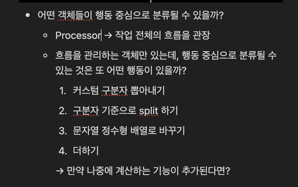 이에 Processor 하나의 클래스에서 Calculator, Validator, Splitter 라는 객체가 탄생하게 됐다.