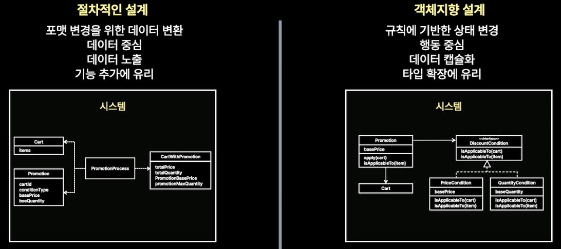이가 중요한 패러다임이라는 것은 알고 있지만, '왜' 라는 질문에 대답할 수 없다는 것을 깨달았다.이에 객체지향적으로 설계해야지 라는 생각부터 지우고 왜 내가 객체지향을 해야 하는지부터 고민을 하기 시작했다.관련된 자료들을 찾아보다, 인프콘 2024에서 조용호 연사님이 강연해주신 '객체지향은 여전히 유용한가?' 라는 강의를 들어 보았다.이를 통해 언제 어떤 경우에 객체지향이 옳은지 알게 되었고, 무조건적으로 절차지향을 지양하고자 하는 태도는 옳지 않다는 것을 알게 됐다.