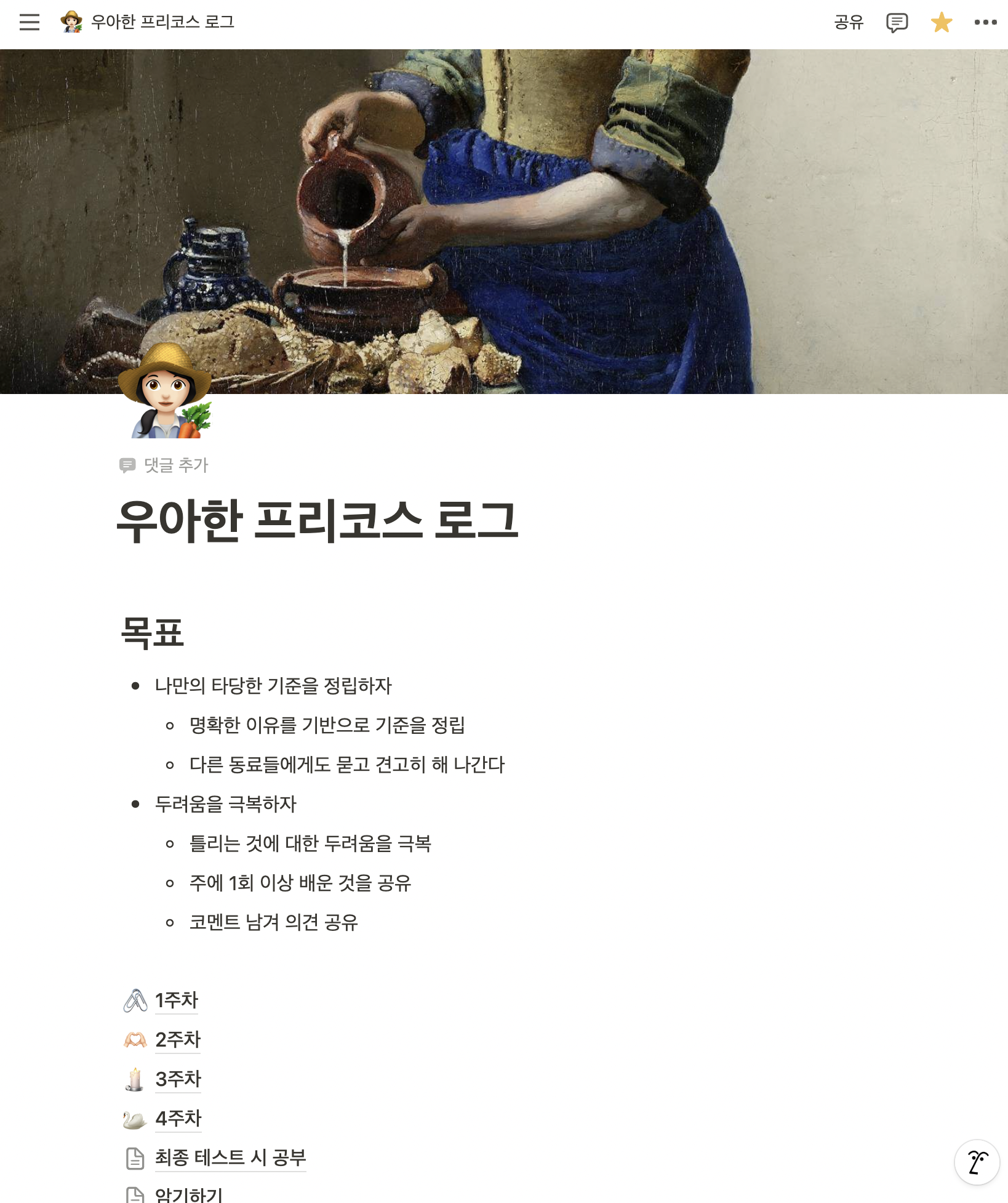 나는 프리코스를 시작할 때 디스코드에서 공유 받은 노션 템플릿을 사용해 문서화를 했다.