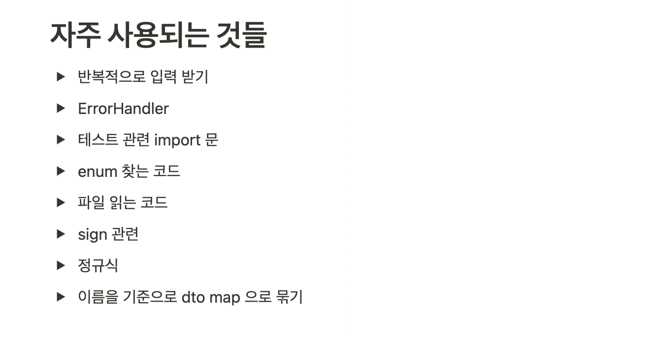 그리고 이건 다들 하시는 것이지만, 코드 스니펫도 따로 다 작성해서 갔다.
