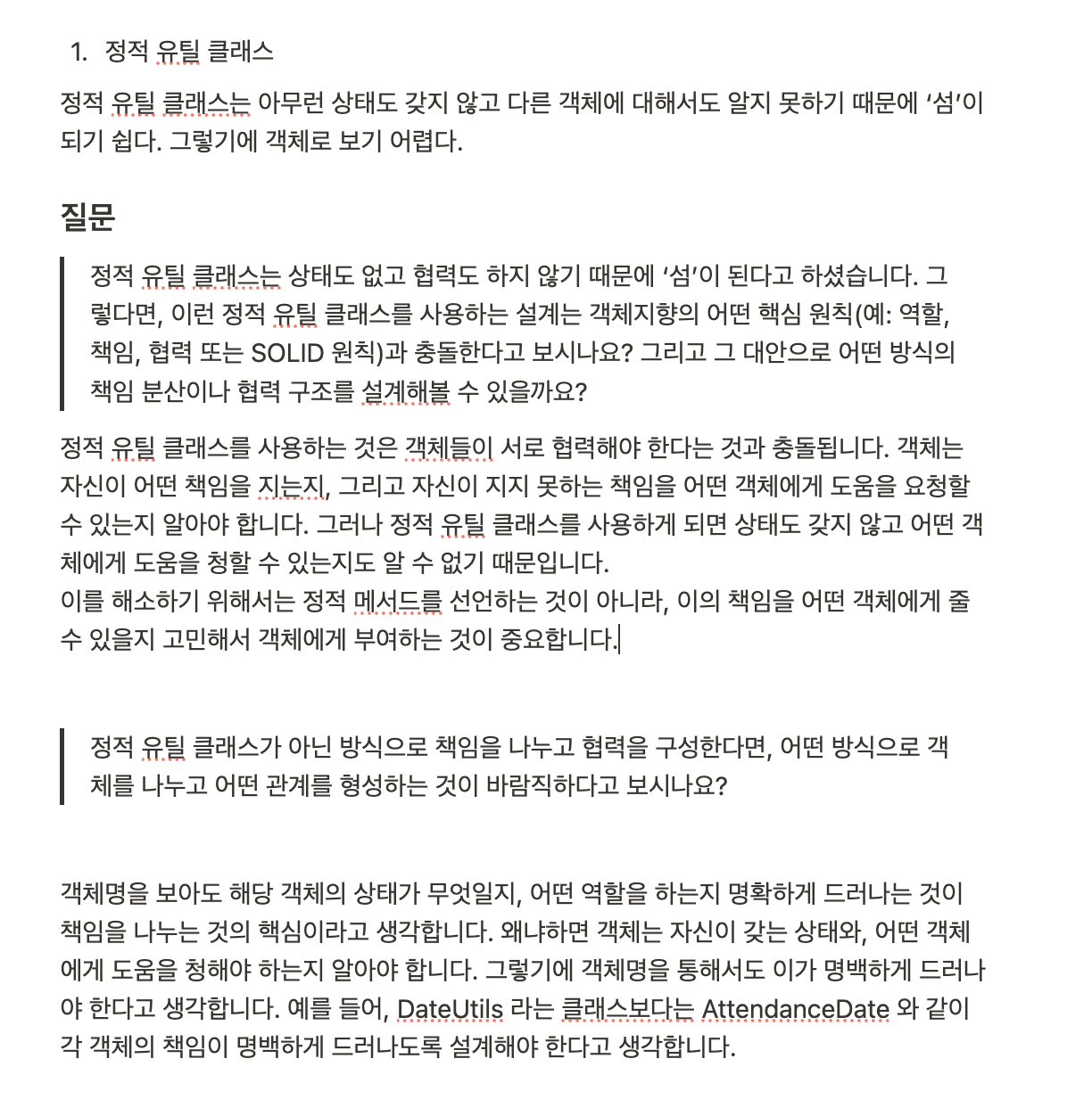 그러나 이렇게 깊게 깊게 파고 들기에는 시간이 부족해서 노션에 각 키워드들에 대한 질문들을 뽑아내고 나의 대답들을 정리하고자 했다.