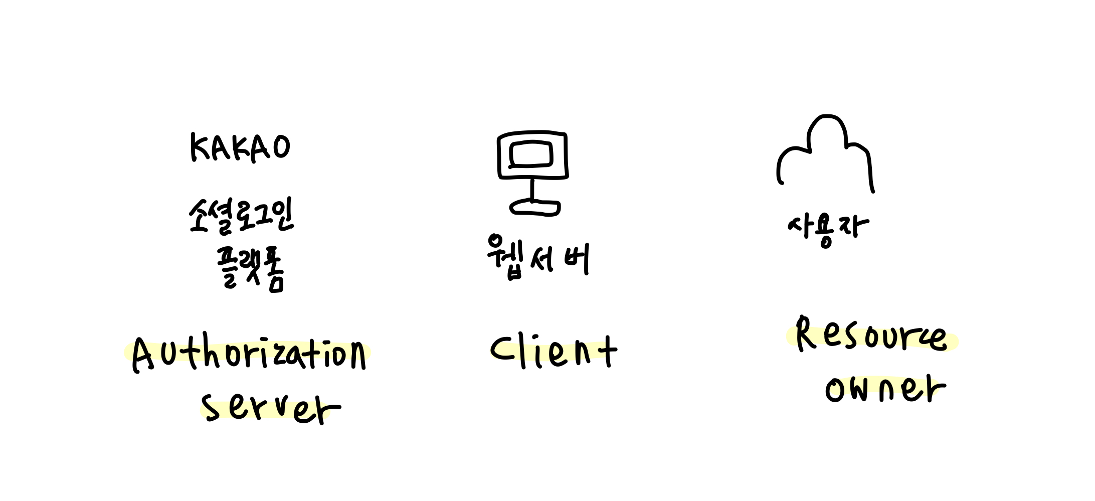 OAuth 를 사용하기 위해서는 세 가지의 주체를 알아야 한다.