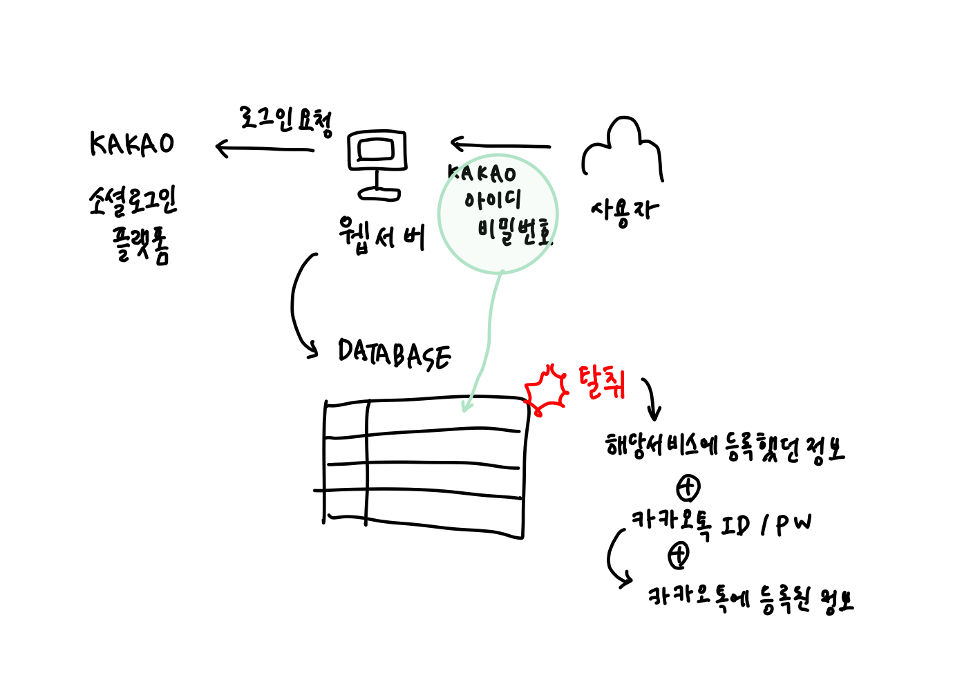 사용자의 입장에서는 해당 웹 서버의 db 가 탈취된다면 해당 서비스뿐만 아니라 카카오의 정보까지 탈취당하게 되는 격이다.